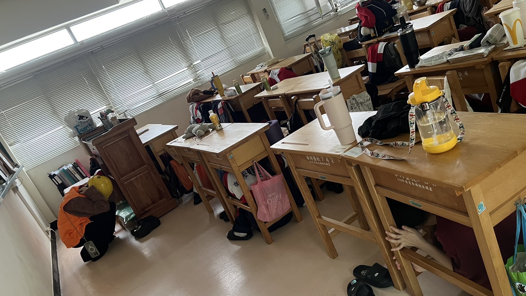 3、在工作場所(如機關、社團、工廠)及在學校之人員、學生,立即進入指定之防空避難位置避難。